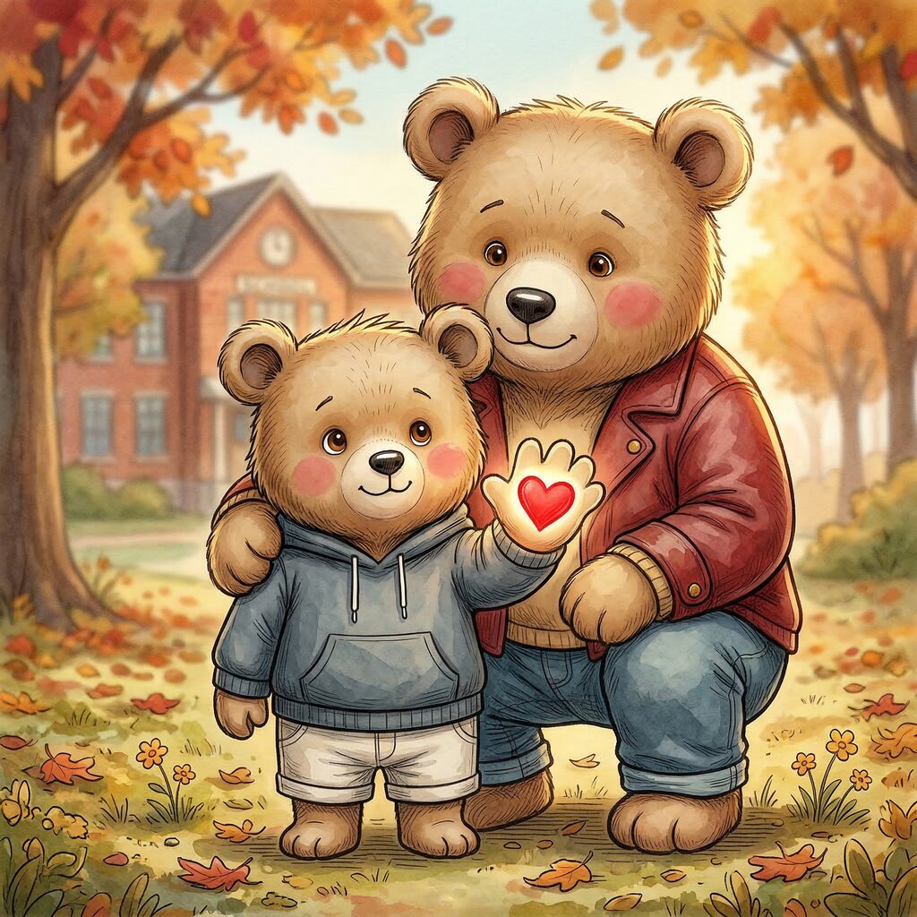 Die Geschichte behandelt die Trennungsangst, indem sie den Kleinsten ein konkretes Werkzeug anbietet — das auf die Handfläche gemalte Herz —, das die affektive Bindung greifbar und reproduzierbar macht. Im Gegensatz zu anderen Strategien bedarf es hierbei keines äußeren Objekts: Der Körper selbst wird zur Erinnerung an die Liebe. Die Erzählung geht ehrlich mit der Emotion um: Bärchens Herzrasen hört nicht sofort auf, aber er ist dennoch handlungsfähig. Dies vermittelt eine lebenswichtige Botschaft: Beruhigungswerkzeuge beseitigen schwierige Emotionen nicht, sondern schaffen den nötigen Raum, um trotz ihnen weitermachen zu können.